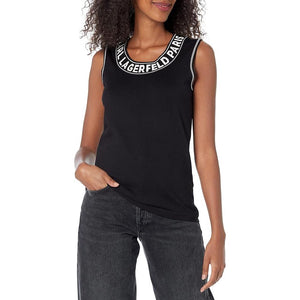 karl lagerfeld Paris Women's Sleeveless Logo Soft Sweater Vest Black L2KSS757 BLK ET1