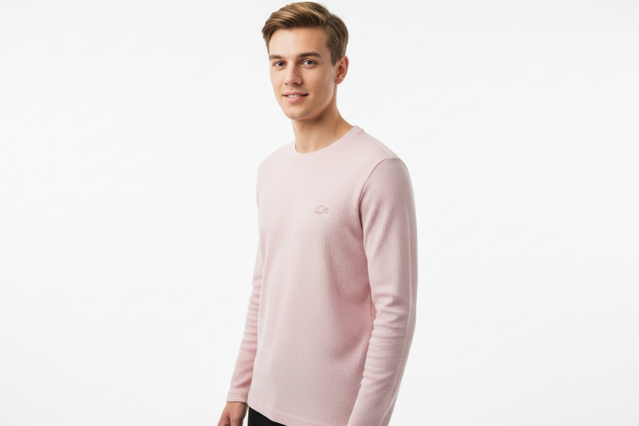Material: 100% Waffled (waffle-knit) cotton; ribbed cuff edges contain Cotton (96%) and Elastane (4%)