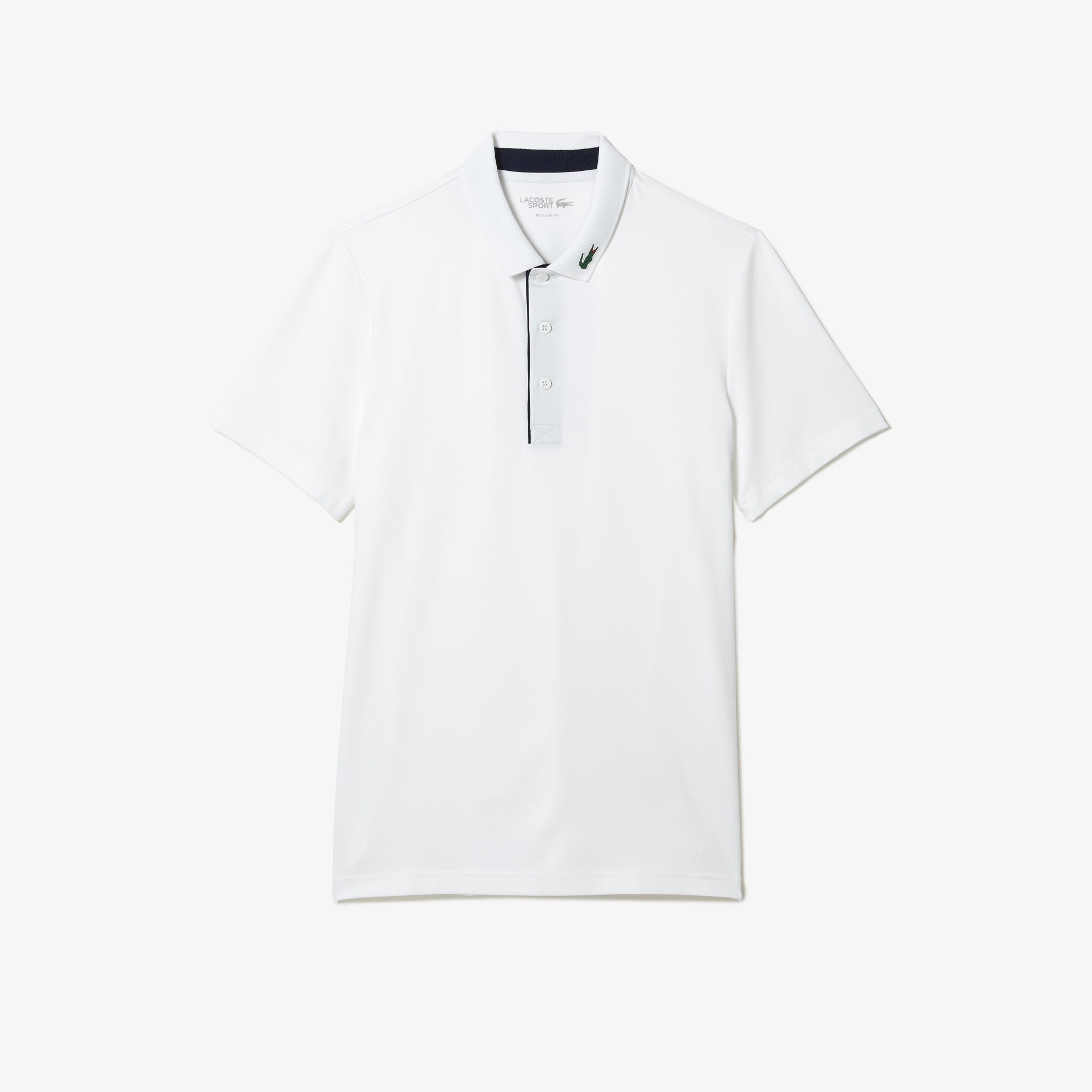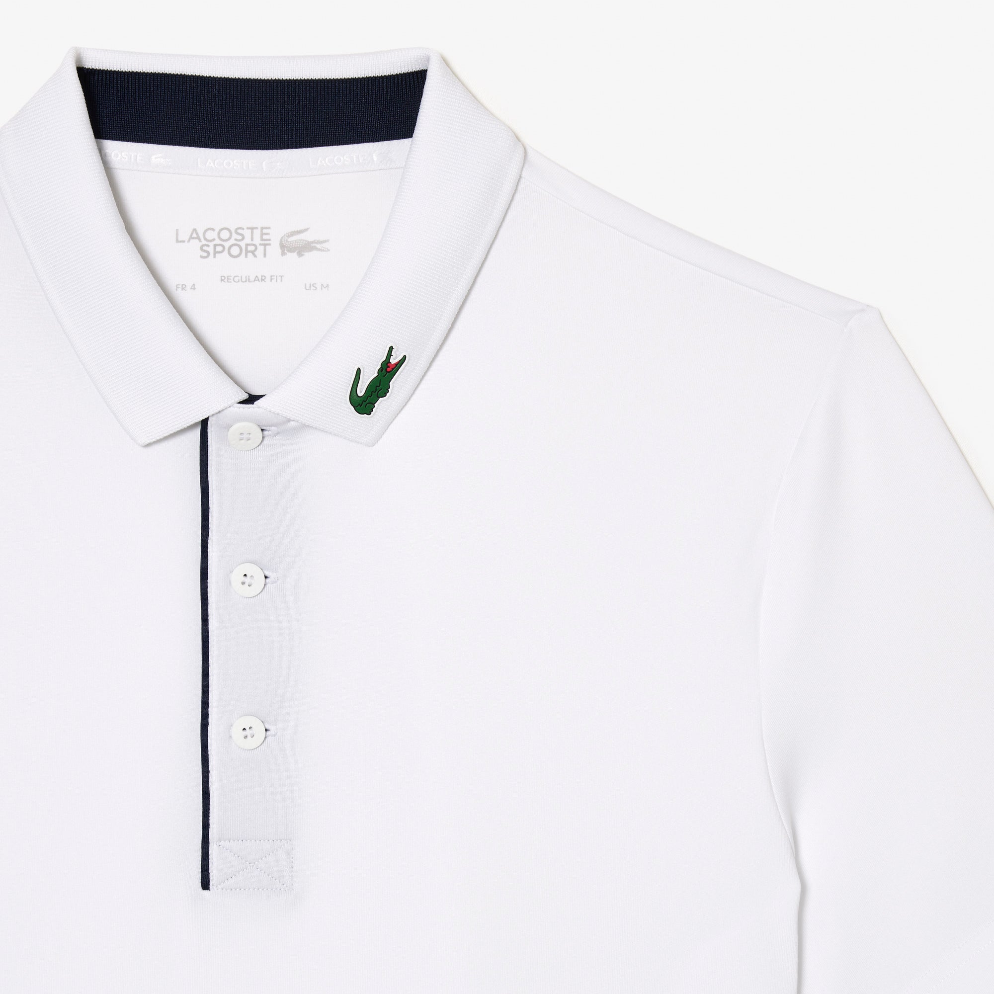 - Rigid crocodile sewn onto collar : Legendary Lacoste