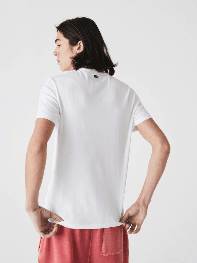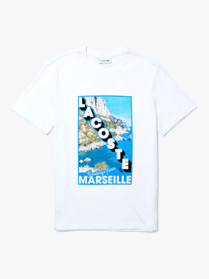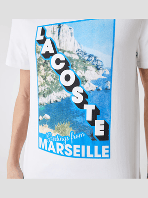 Lacoste Mens Crew Neck Landscape Print Cotton T-shirt White/Blue TH0437 3YD