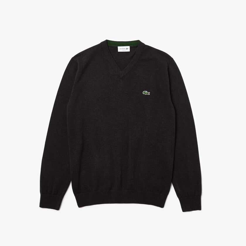 Lacoste Mens Organic Cotton V-Neck Sweater Lighting Chine AH1951 EL6