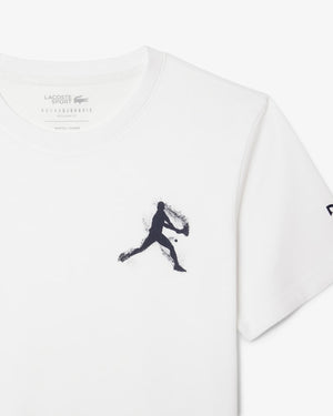 Designed in collaboration with tennis legend Novak Djokovic, this Lacoste Tennis T‑Shirt offers both performance and style. Crafted from a soft organic cotton and recycled polyester blend, it integrates Ultra Dry moisture-wicking technology and a dynamic Novak action print on the chest—ideal for the court or stylish off-duty wear.