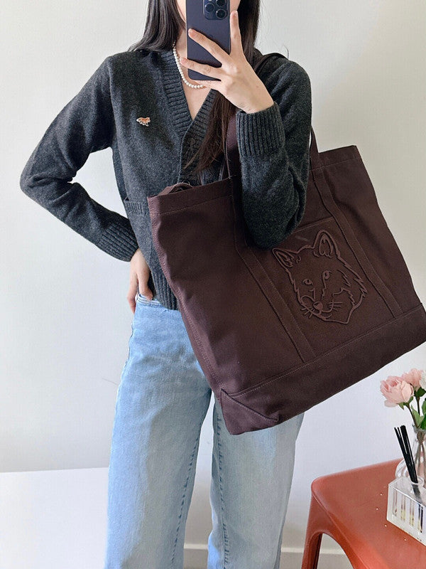 Maison Kitsuné Bold Fox Head XL Tote Bag Pecan Brown (LW05105WW0083 P299)