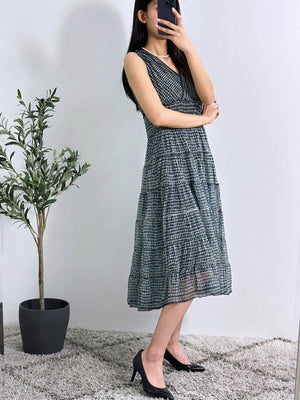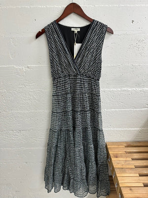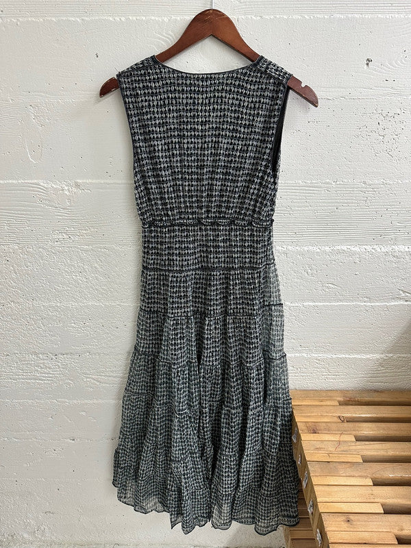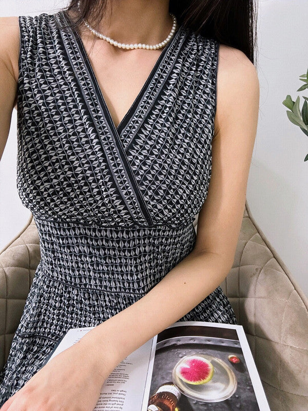 Max Studio Women's V-Neck Sleeveless Mesh Mini Dress Bkack/Ivory Kite Geo 9912K67 M1