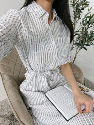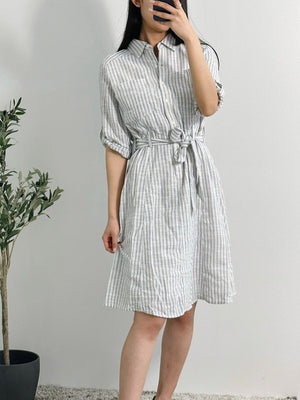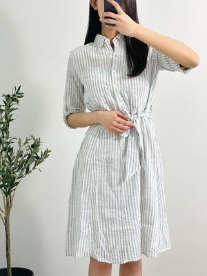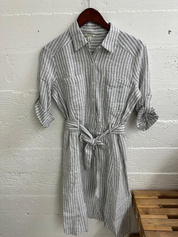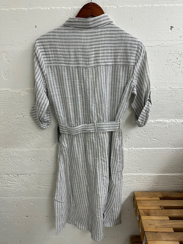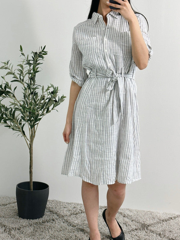 Max Studio Women's Yarn Dye Belted Shirt Dress White/Navy A912L51 M1