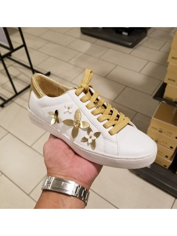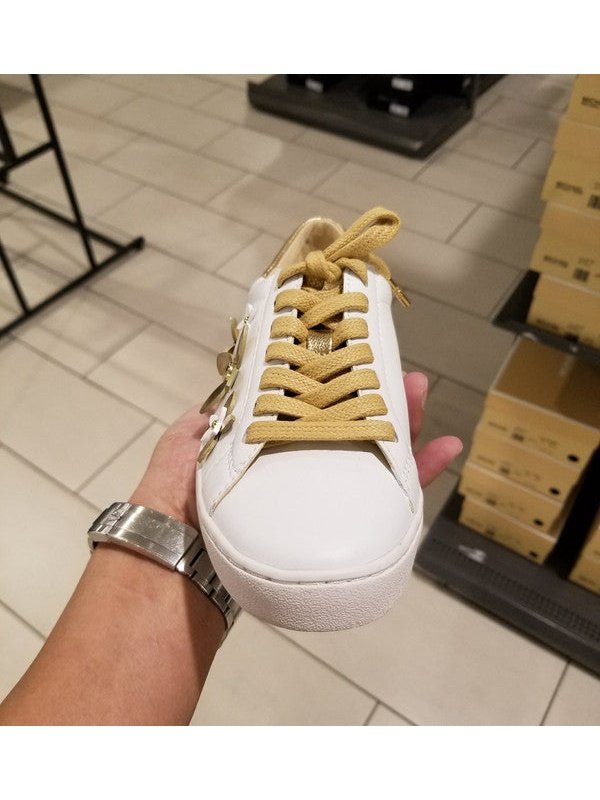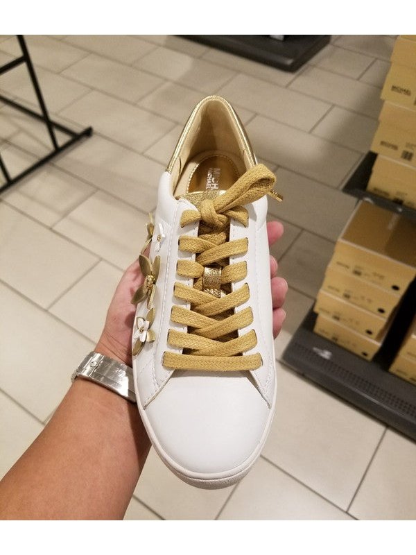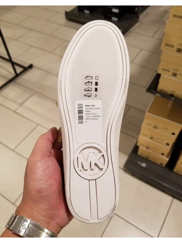 Michael Kors Women's Lola Leather Sneaker Opt White/Pale Gold 45R7LOFS2L
