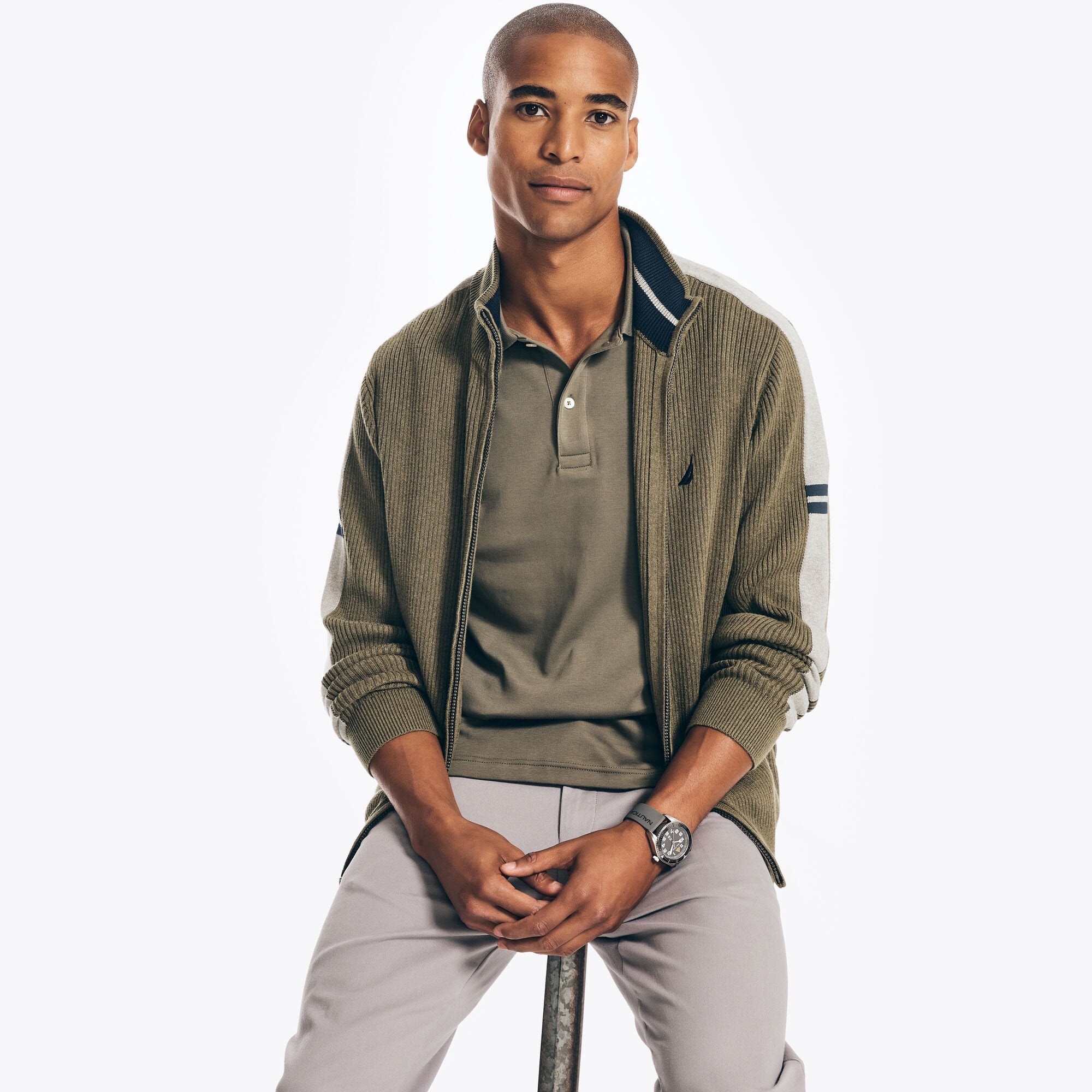 Nautica Men's Classic-Fit Mock-Neck Sleeve Stripe Full-Zip Sweater Hillside Olive S27307 ET3