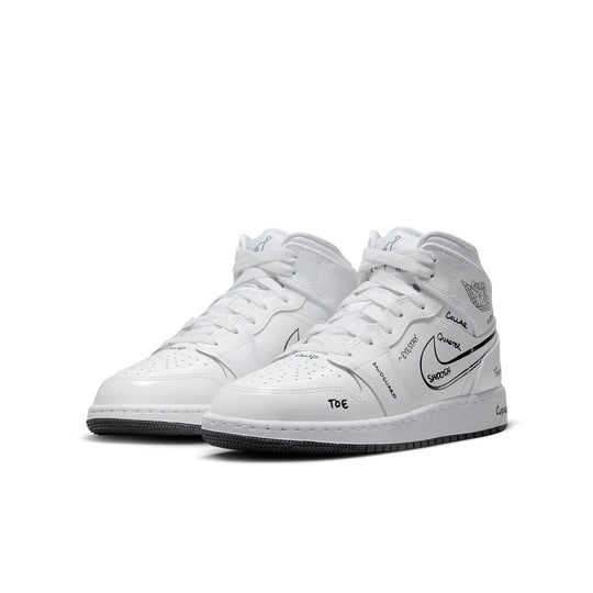 Nike Kid's Jordan 1 Mid SS GS Schematic White/Black DQ1864 100