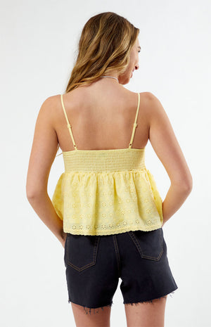 Pacsun Women's LA Hearts Ruched Bow Tie Babydoll Top Yellow 0731461580335 ET1