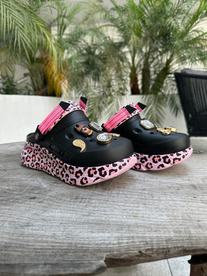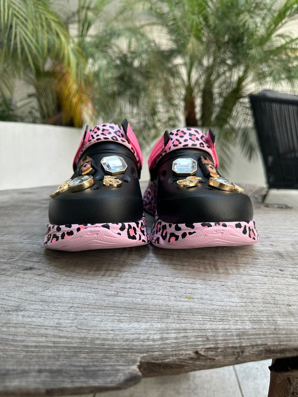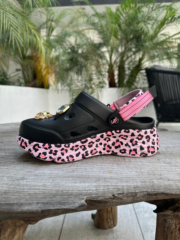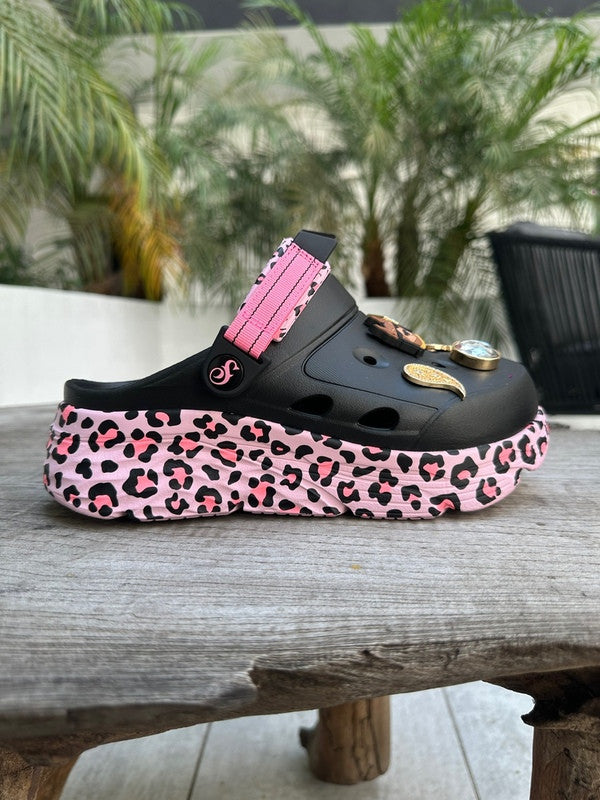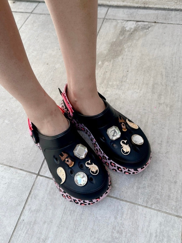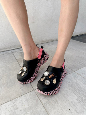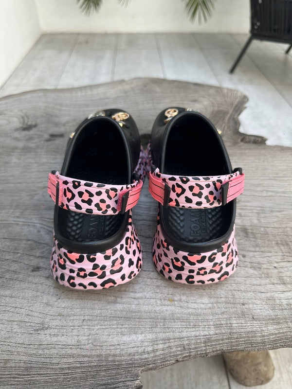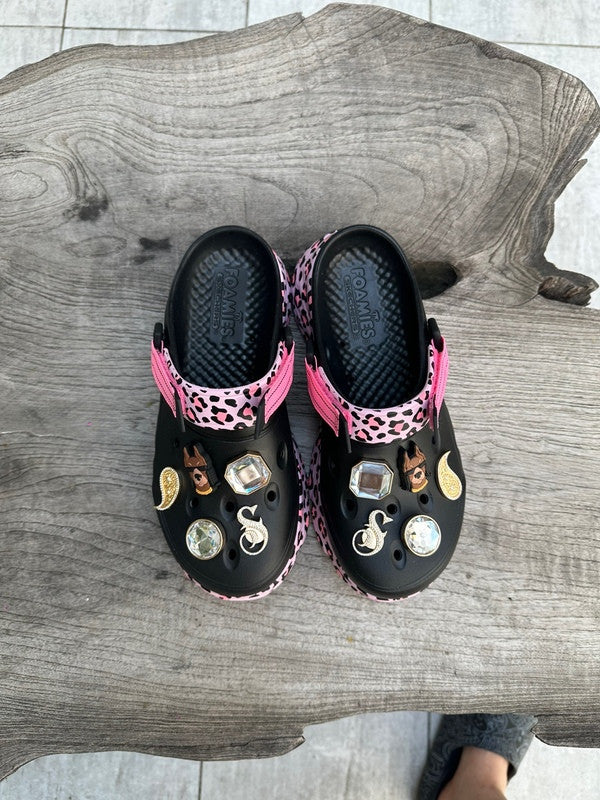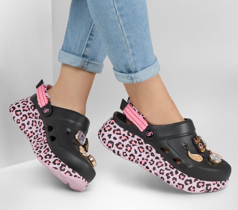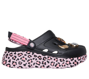 Skechers x Snoop Dogg Womens Foamies Max Cushioning Purrfect Leopard Black Clogs 186014 BLK