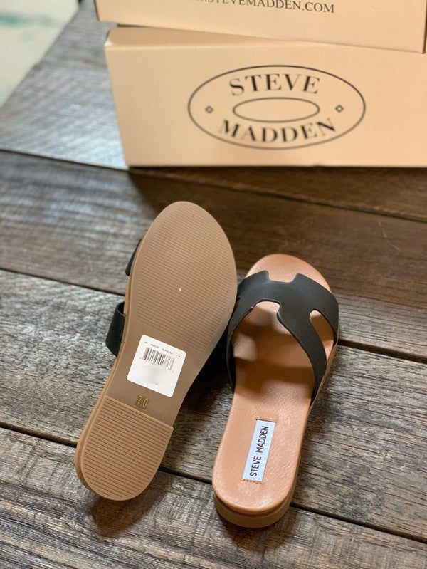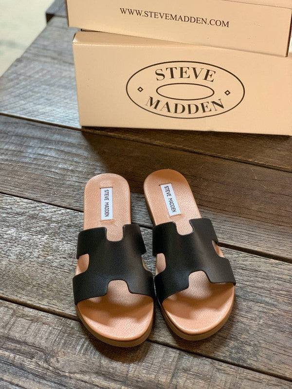 Steve Madden Women's Dariella Leather Slides Black Leather DARE01S1