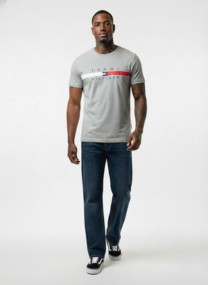 Tommy Hilfiger Mens Flag Stripe T-Shirt B10 Grey Heather 78J4997 050