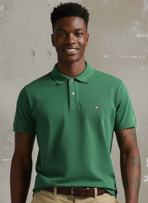 A clean and modern essential, the Tommy Hilfiger Justin Short Sleeve Polo combines a custom-fit silhouette with a soft, breathable knit. Designed in the fresh “Echos Of Green” shade, it delivers an elevated casual look that works for everyday wear, weekend outings, or effortless layering.