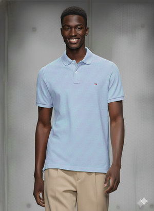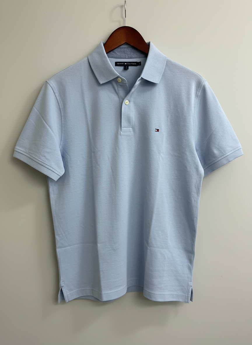 Material: Cotton (or cotton blend) upper — refers to typical Tommy Hilfiger polos though exact fiber-content may vary.