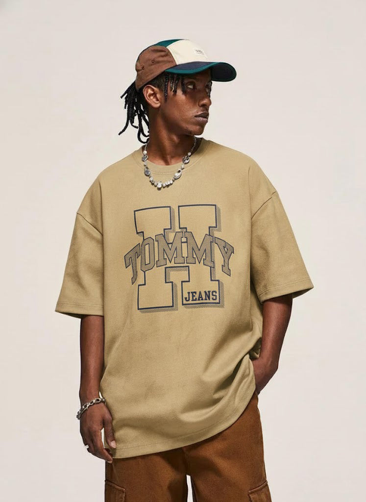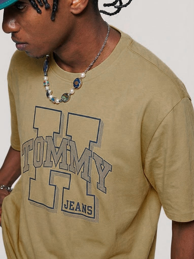 A warm-toned, versatile tee that adds modern Tommy Jeans style to any relaxed outfit.