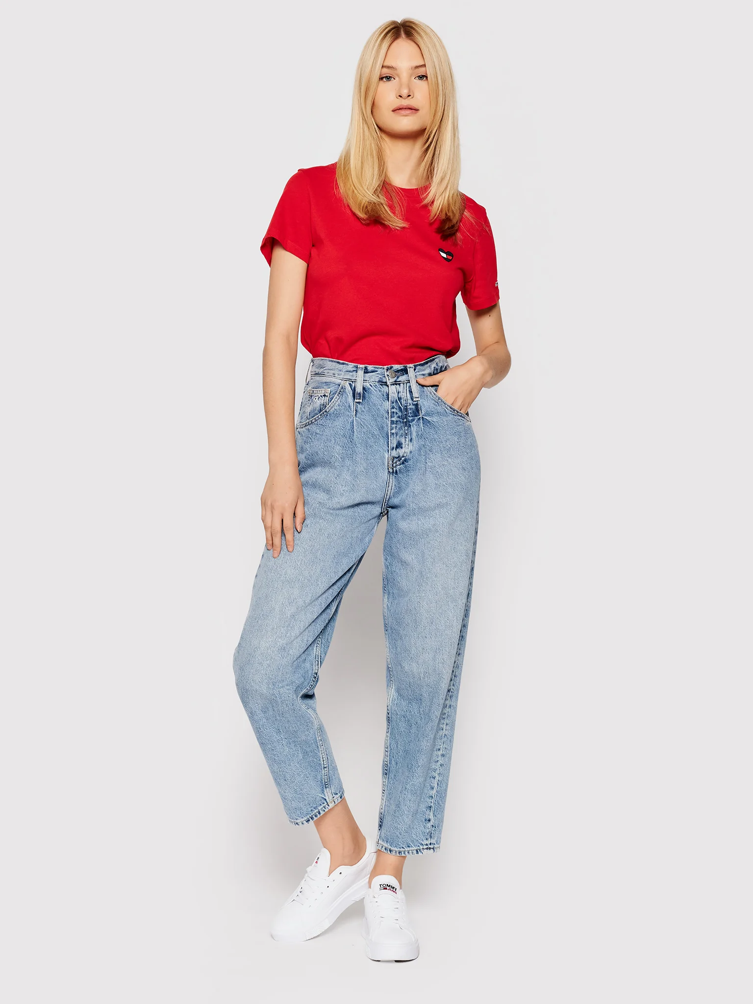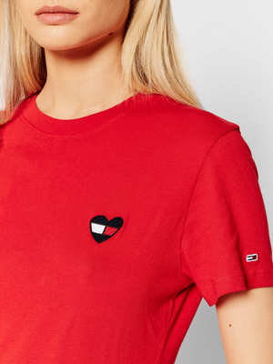 Tommy Hilfiger Women's Heart Embroidered T-Shirt Red J7GH0490 SCA T11
