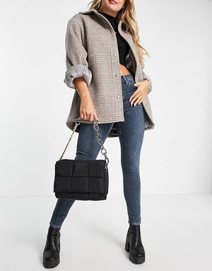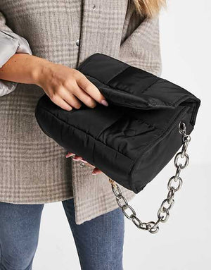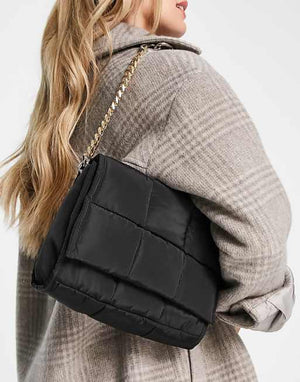 Topshop Women's Quilted Shoulder Bag With Chain Strap Black 113083626 MX2