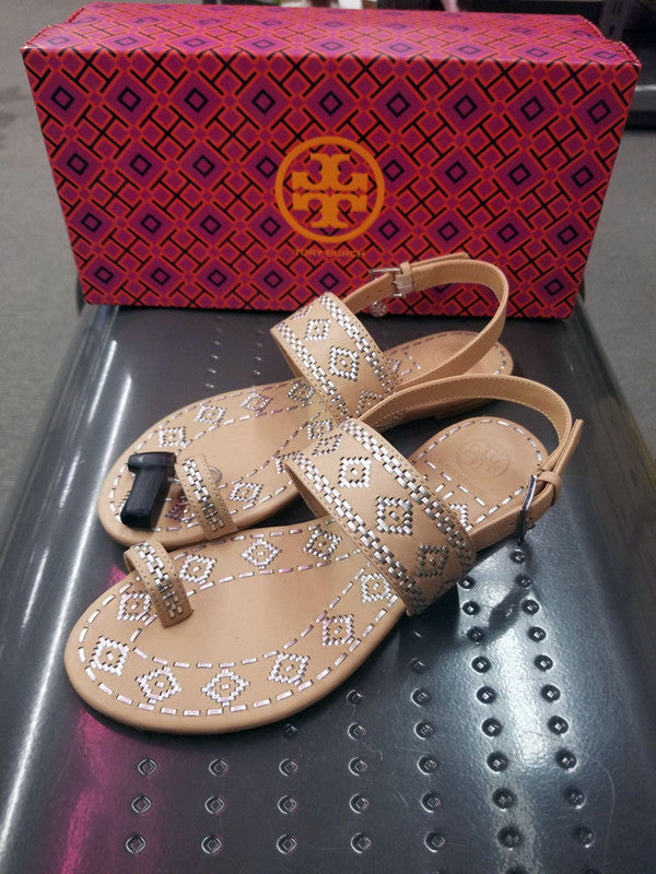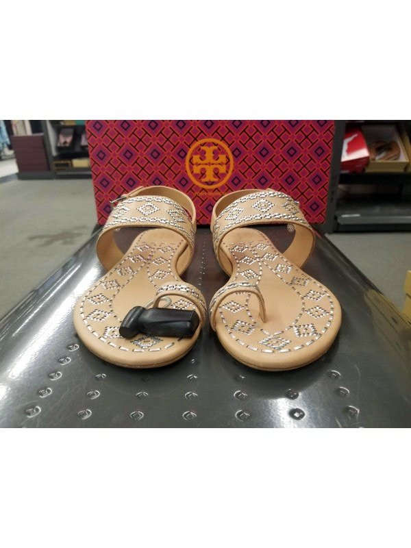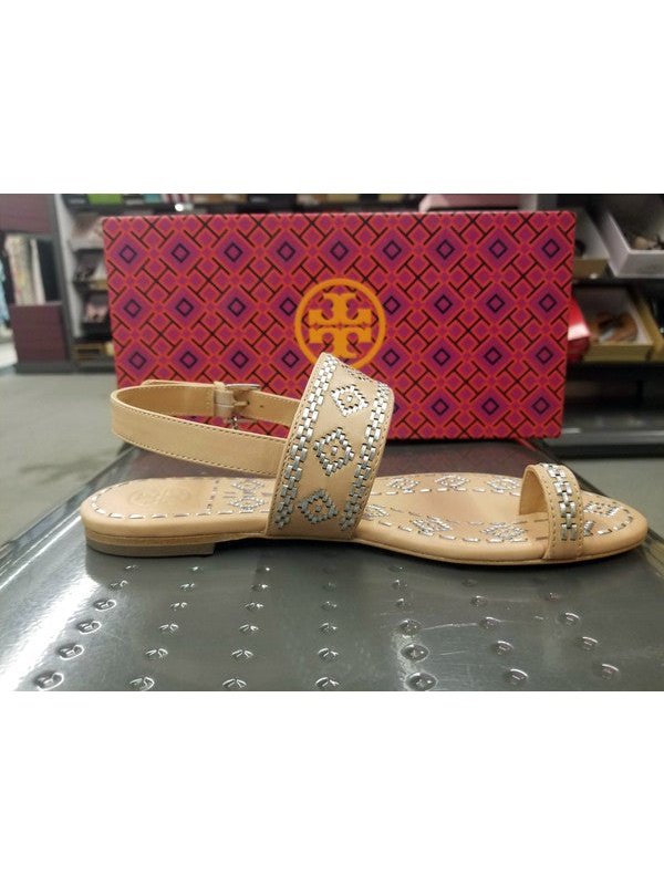 Tory Burch Women's Blake Calf Leather Metallic Whipstitch Ankle Strap Sandal 47120 261