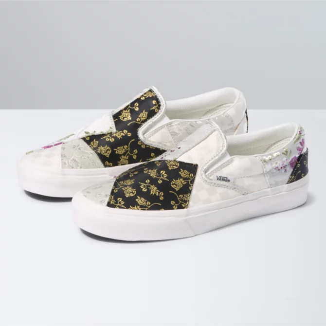 First introduced in 1977, the Vans #98??now known as the Classic Slip-On??instantly became an icon in Southern California. Fast forward to today, and the Classic Slip-On is known worldwide for its comfortable silhouette, easy wearability, and beloved design. Featuring mixed brocade textiles for an elevated patchwork design, the Brocade Classic Slip-On is an everyday essential with true ??Off The Wall?? style. This iconic slip-on shoe also includes low profile uppers, supportive padded collars, elastic side accents, and signature rubber waffle outsoles.