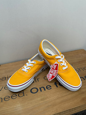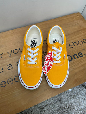 The Vans Era Sidewall Print adds a fresh graphic twist to the classic Vans Era silhouette. Finished in a bold Saffron/Meals colorway, this low-top sneaker features a distinctive printed sidewall that elevates the iconic skate design. Built for everyday wear, it combines classic Vans heritage with modern visual appeal.