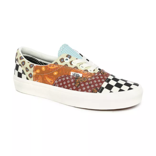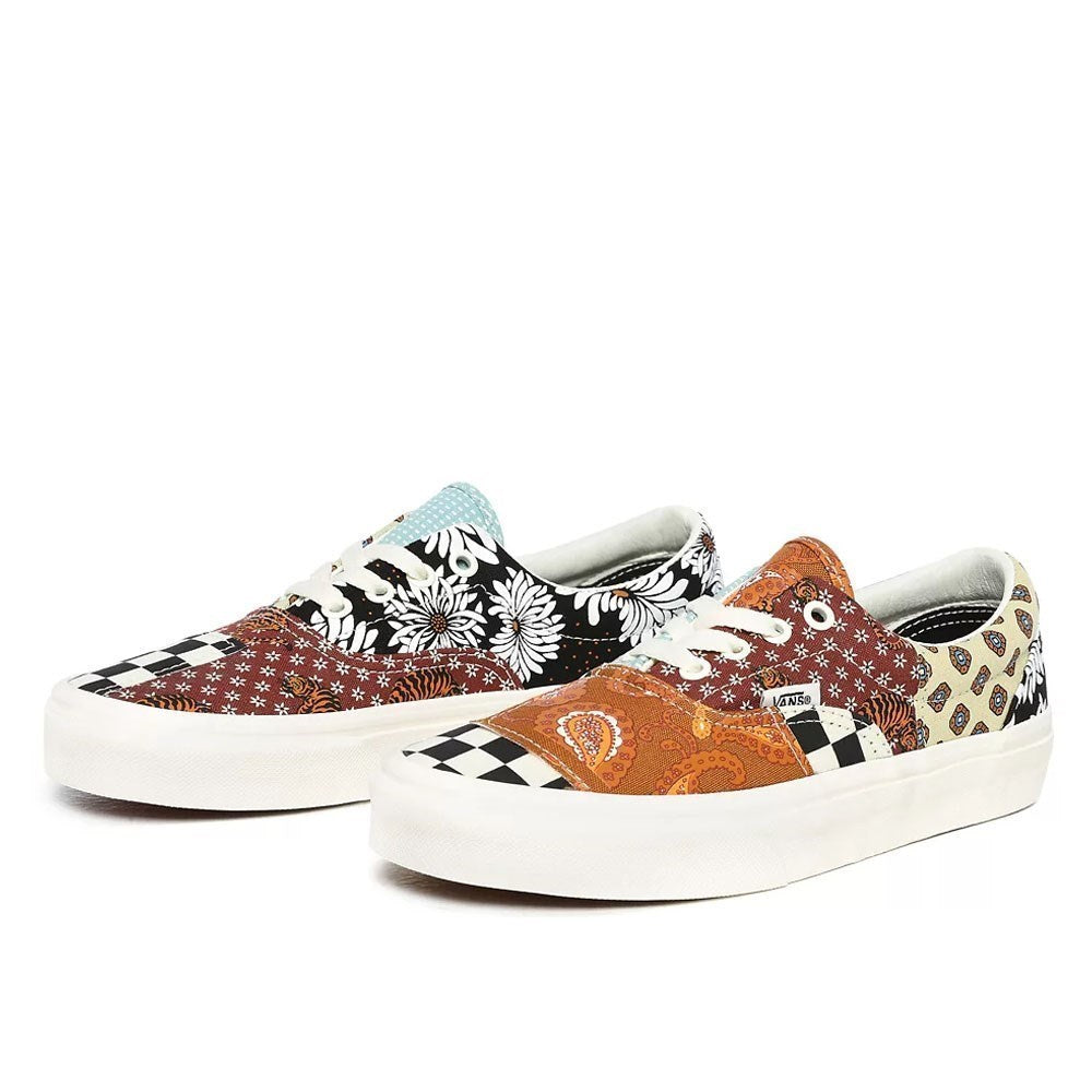 The Vans Era Tiger Patchwork reimagines a skate classic with bold, creative energy. This design combines tiger stripes, checkerboard prints, and bandana-inspired motifs in a striking patchwork layout — all balanced on a clean Black/True White foundation. A true standout piece for those who mix heritage and modern streetwear style.