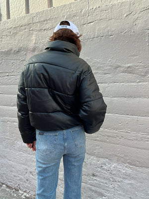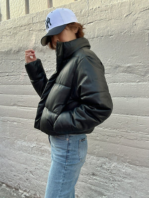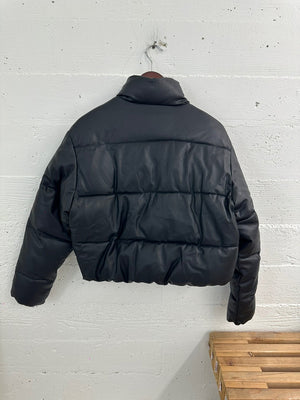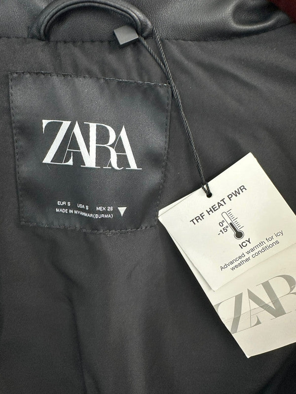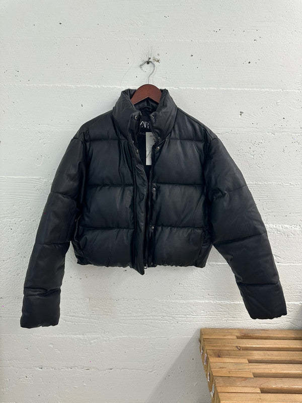 Zara Women's Leather Cropped Puffer Jacket Black 3427 804 800 Z1