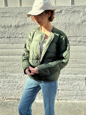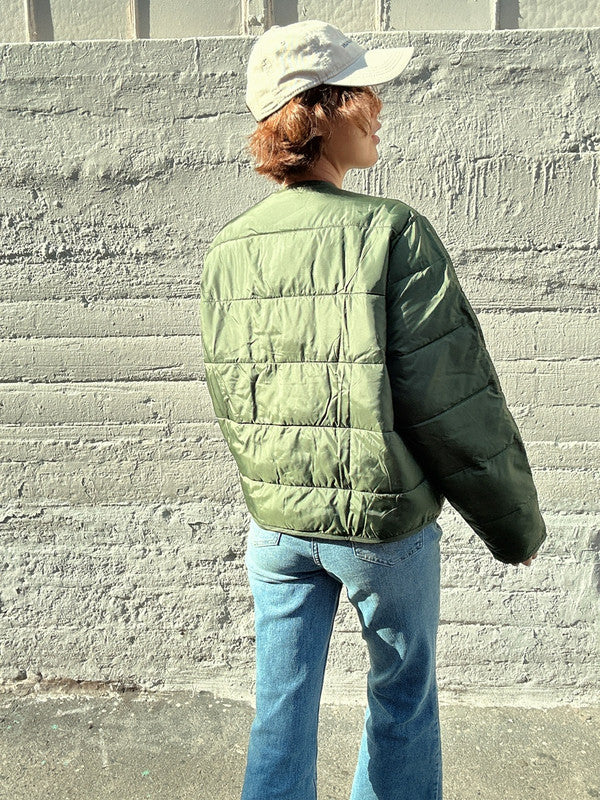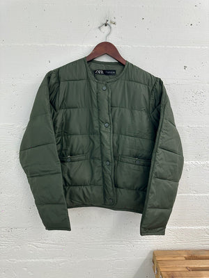 Zara Women's Pocket Puffer Button Closure Jacket Green 5071 021 500 Z1